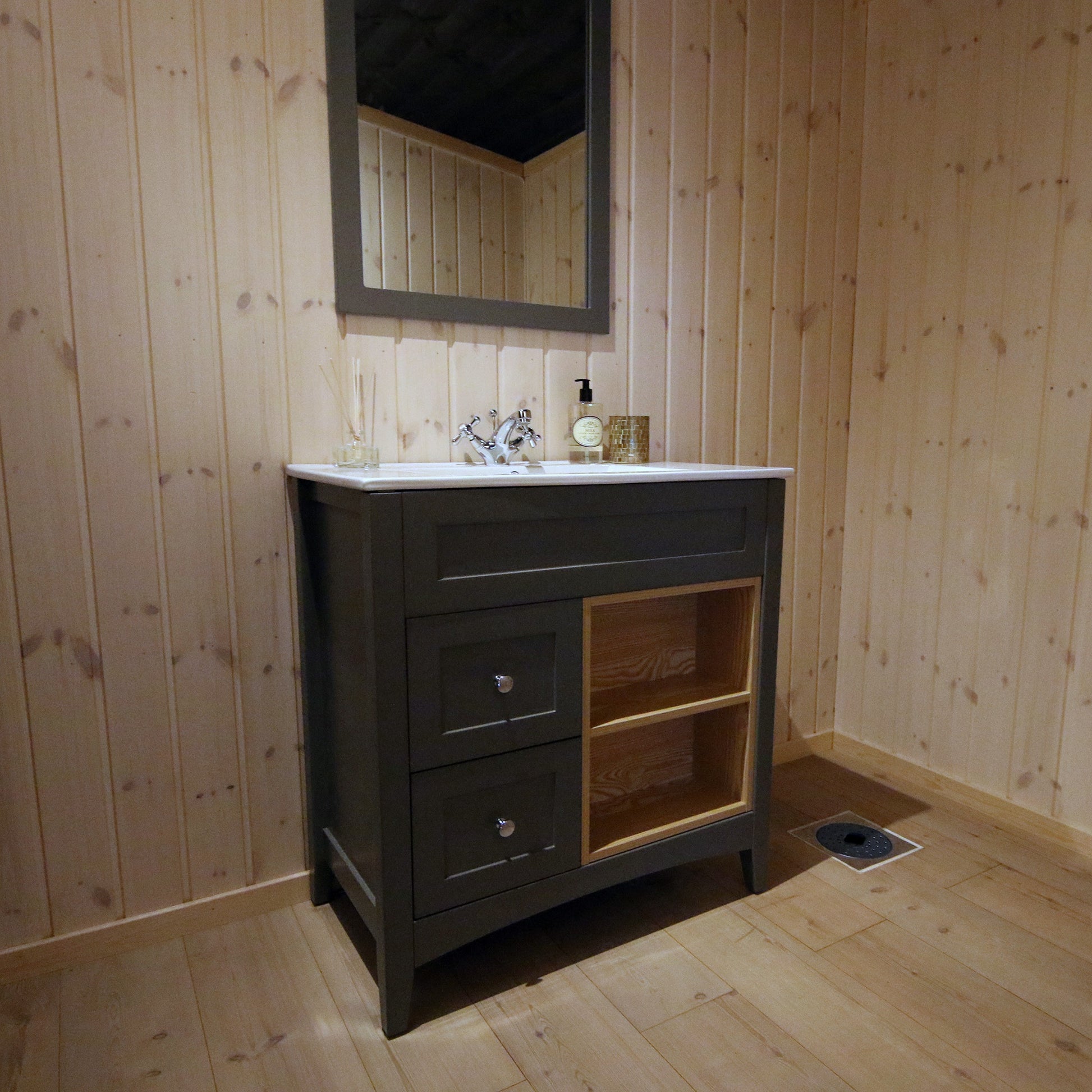 Vägghängd spegel i badrumsserien Aurora i färgen antracit.