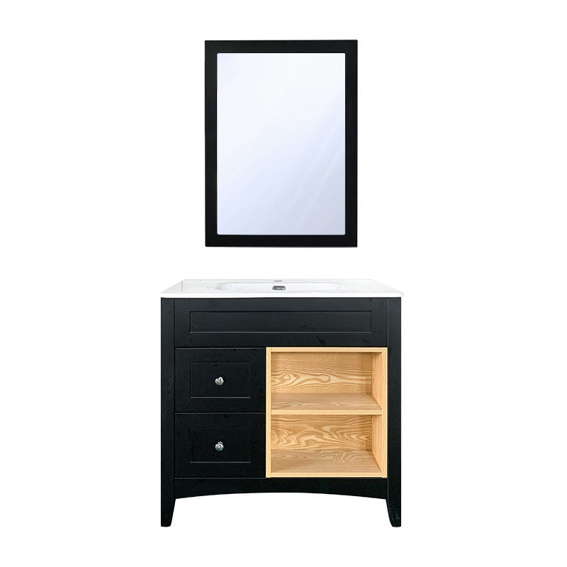 Vägghängd spegel i badrumsserien Aurora i färgen svart.