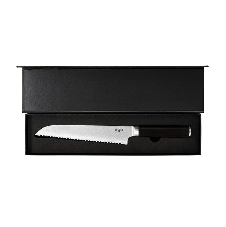 Brödkniv i japanskt rostfritt VG-10 stål med extrem kanthållbarhet och mycket god korrosionsbeständighet.