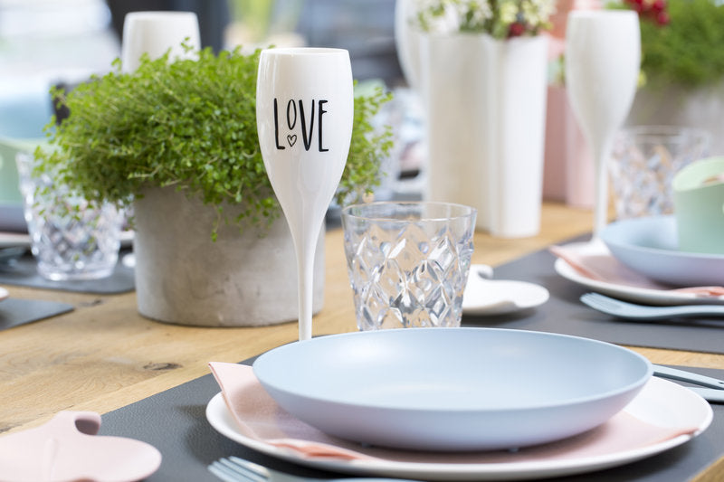 Koziol Cheers är det eleganta och perfekta champagneglaset vid festliga tillfällen. Högkvalitativt material isolerar och håller dryckerna svala och den höga formen säkerställer att den bubblar längre. Perfekt vid födelsedagar, trädgårdsfester och svensexor. Kan maskindiskas. Mått (HxØ): 191 x 57 mm. Med texten: Love