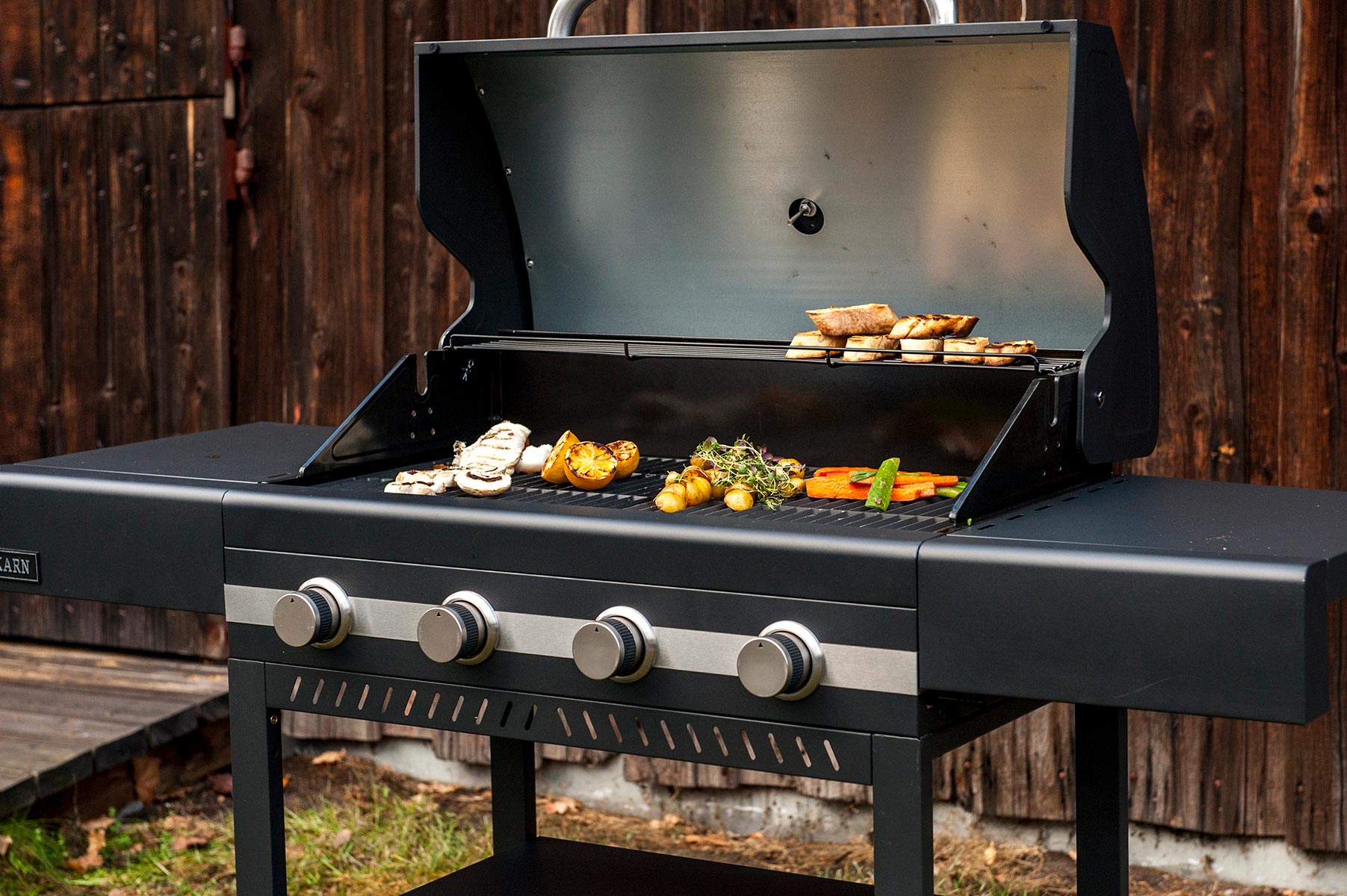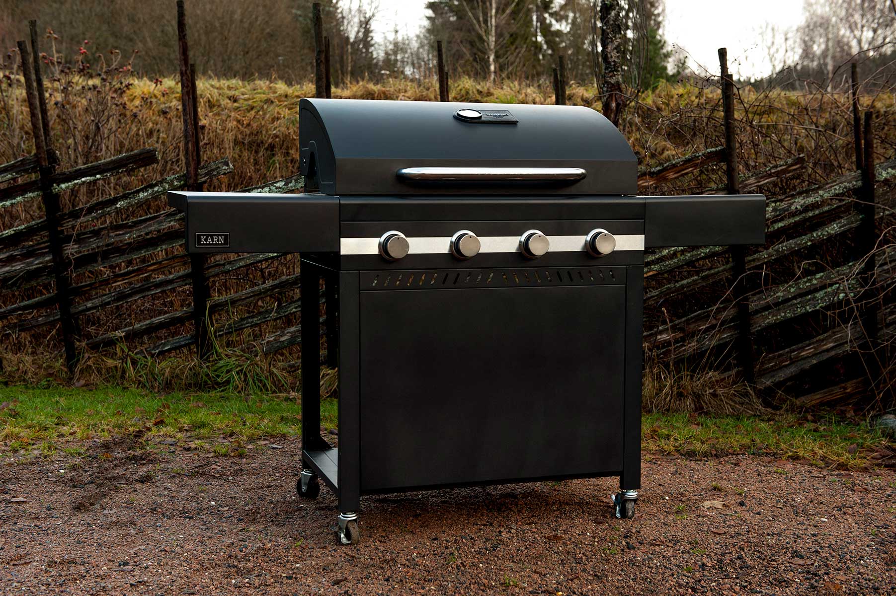 Gasolgrill Karn med 4 brännare är design för användning året om i nordiskt klimat. Karn är folkets grill i Urnorsk-serien - en bra grill, perfekt för alla och väldigt mycket grill för pengarna!