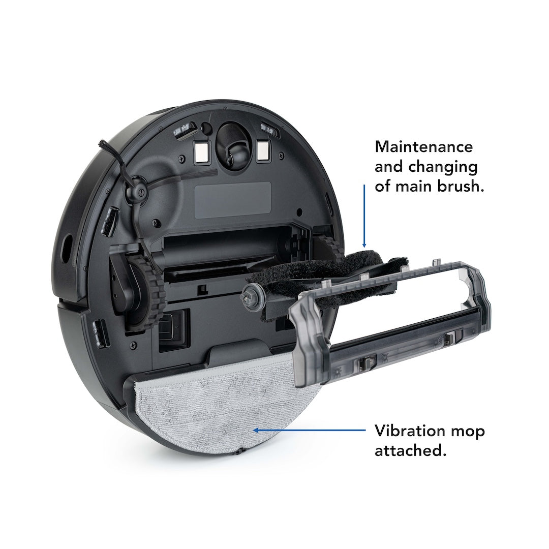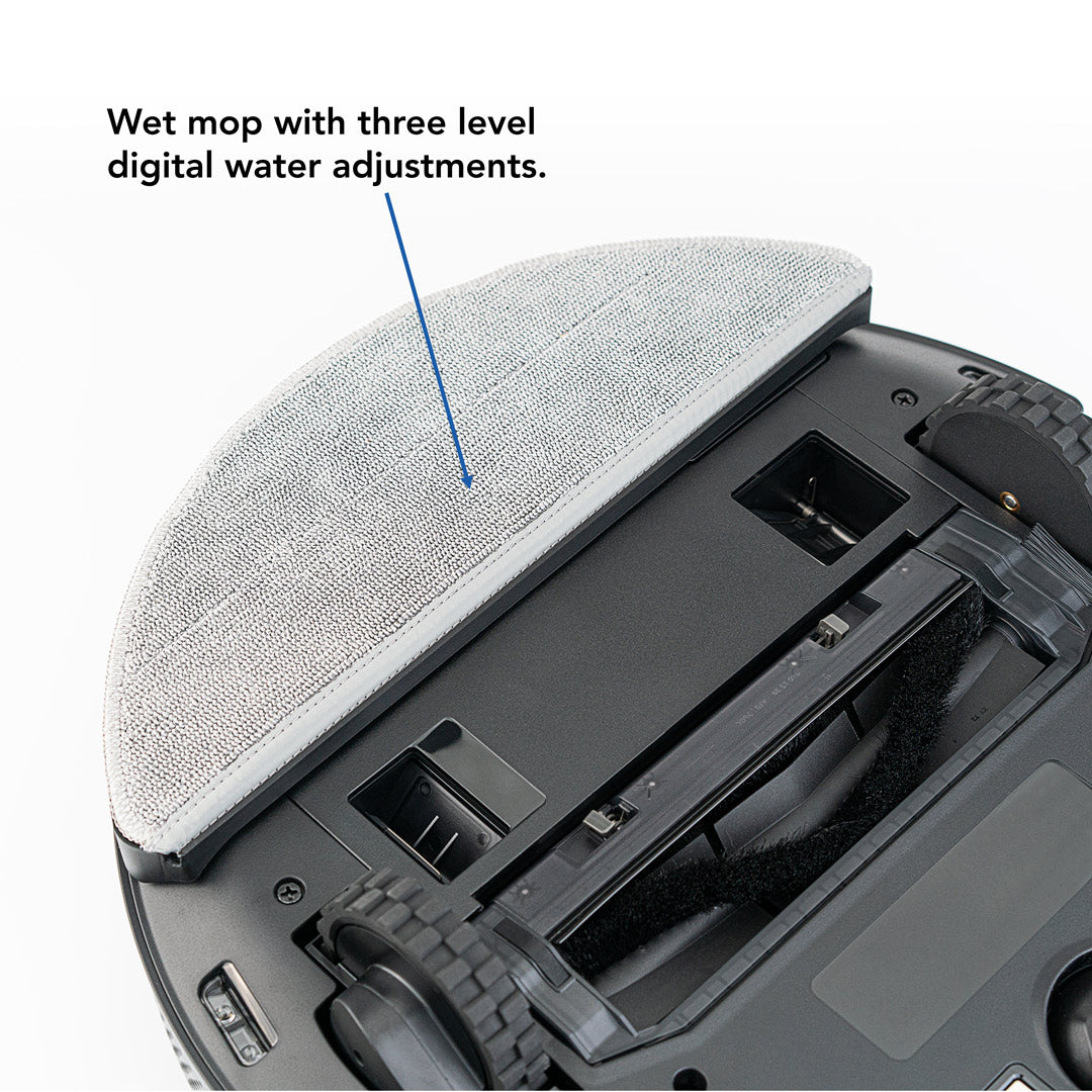 Innobot är inte bara en dammsugare, den moppar även dina golv. Moppen är i full bredd vilket gör att den moppar maximal yta. Till skillnad från andra vibrerande moppar, där endast en liten del av moppens yta rör sig, rör sig hela moppen på Innobot och använder därför maximal skuryta och absorptionsförmåga. Med vibrationsmoppning rör sig hela moppytan fram och tillbaka med ett jämnt tryck för grundlig och noggrann moppning. Denna funktion gör att moppen även tar bort de svåraste fläckarna på golvet. Vibrerande moppning är standardinställningen för denna modell. Du kan enkelt justera mängden vatten den ska moppa med i appen och aktivera Y-moppning utöver vibration.