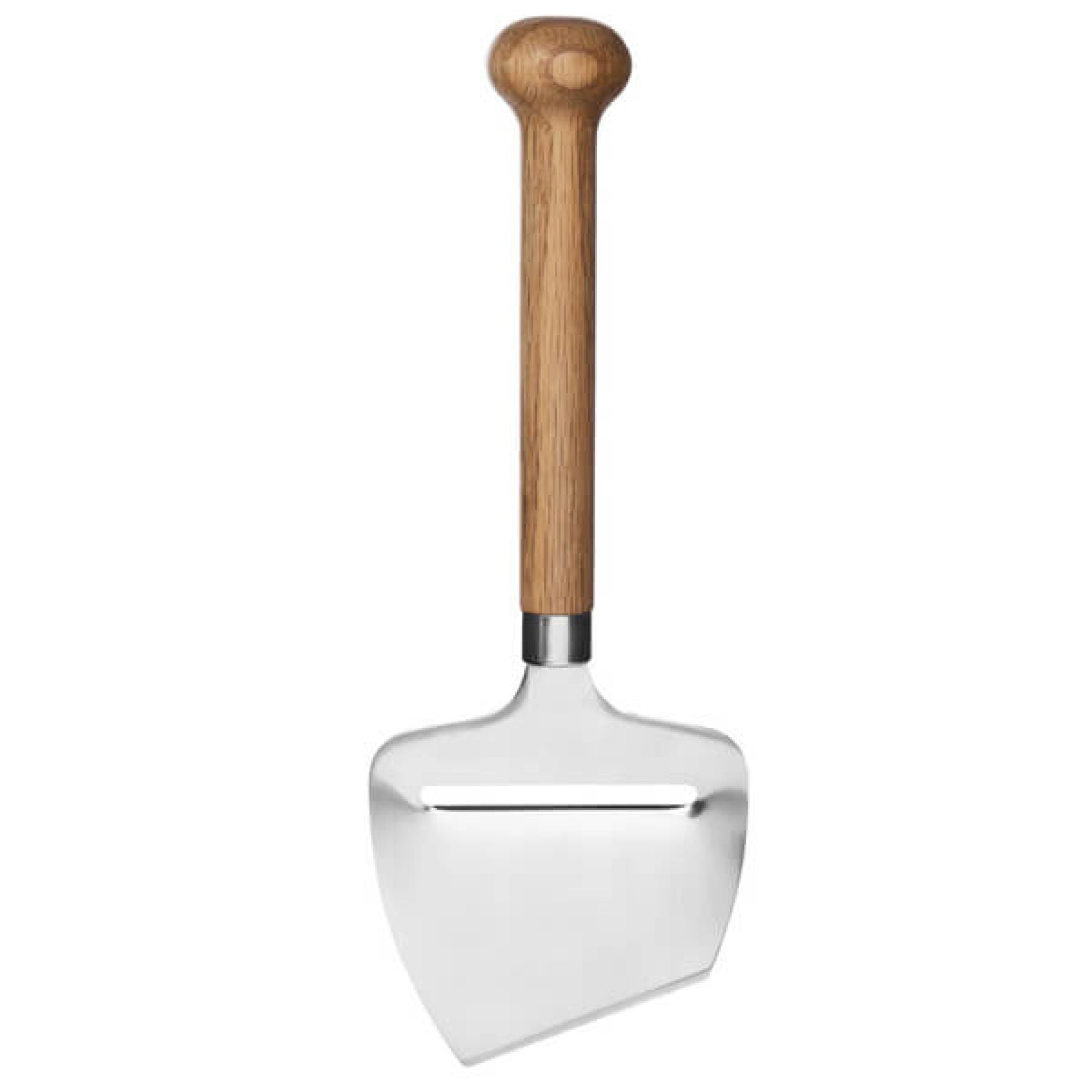 En stilsäker osthyvel att använda vid mysiga frukostar eller på ostbrickan. Hög kvalitet på stålet för bättre kvalitet på hyvlingen, främre delen av bladet fungerar som en ostkniv där du enkelt kan skära ost i bitar. Handtaget är tillverkat i massiv ek. Glöm inte att olja in handtaget med jämna mellanrum.