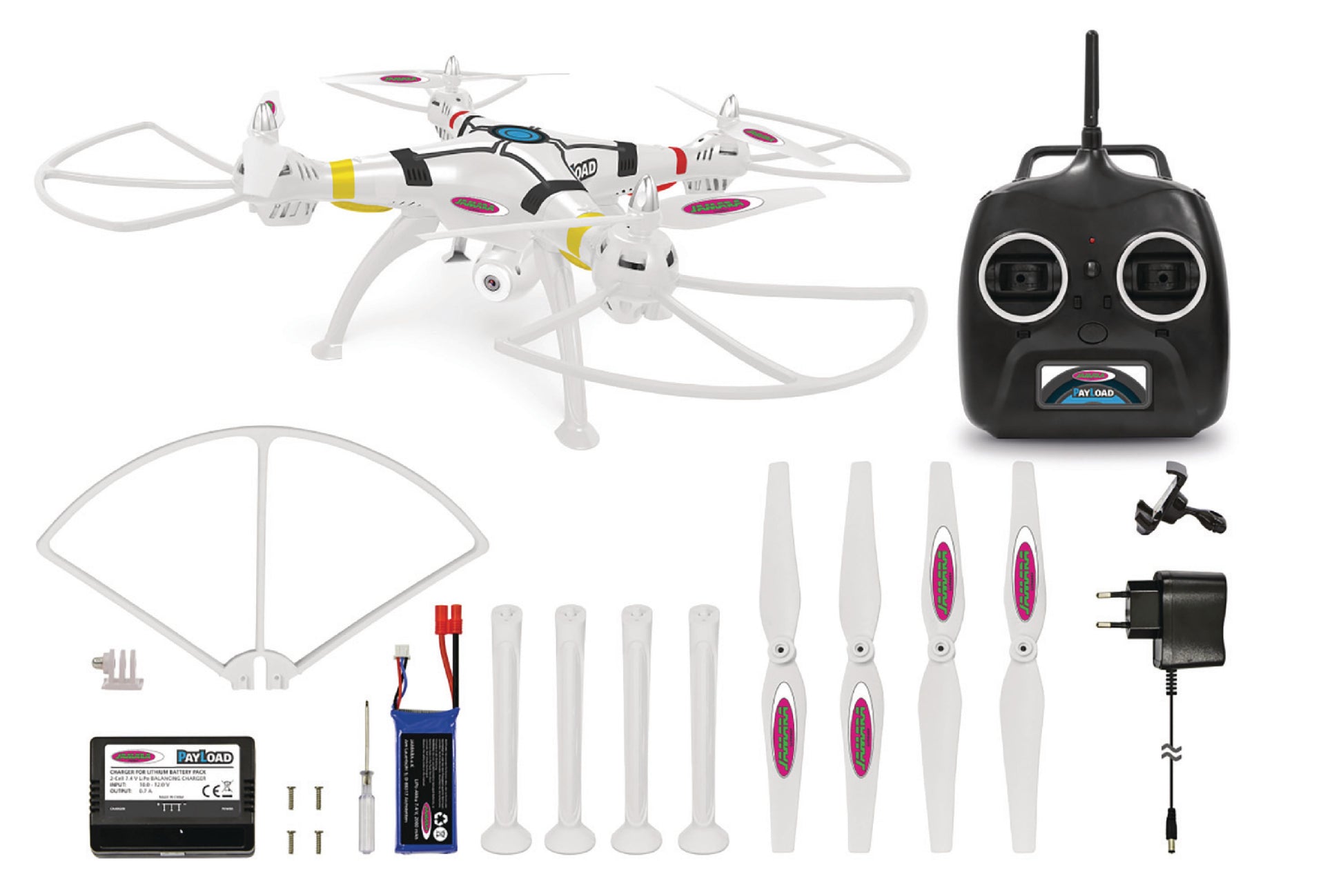 The model offers enough payload to allow to take two Action Cameras, such as the Camara HD Pro, simultaneously on-board